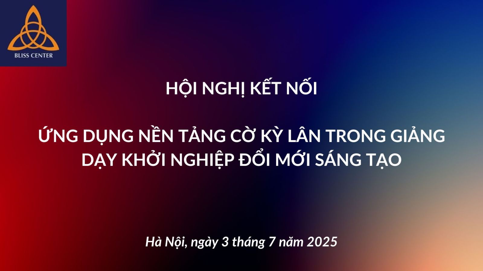 Ngày 3/7/2025, Công ty cổ phần Bliss Center phối hợp với Trường Cao đẳng Quốc tế Hà Nội sẽ tổ chức Hội nghị kết nối: Đánh giá việc sử dụng nền tảng vào trong quá trình giảng dạy chương trình khởi nghiệp đổi mới sáng tạo. Đây là một sự kiện quan trọng dành cho các nhà quản lý giáo dục, giảng viên, doanh nghiệp khởi nghiệp và các tổ chức hỗ trợ đổi mới sáng tạo, diễn ra trực tiếp tại số 1 đường Trịnh Văn Bô, phường Xuân Phương, Hà Nội. Sự kiện dự kiến thu hút hơn 70 đại biểu tham dự, tạo ra một diễn đàn kết nối giá trị giữa các bên liên quan trong hệ sinh thái khởi nghiệp.