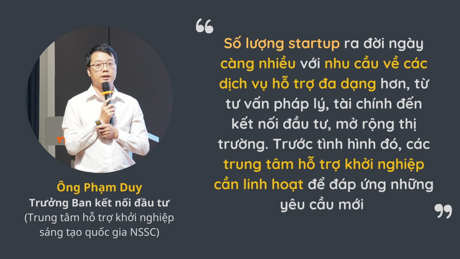 (Ông Phạm Duy – Trưởng ban kết nối đầu tư Trung tâm hỗ trợ khởi nghiệp sáng tạo quốc gia NSSC)