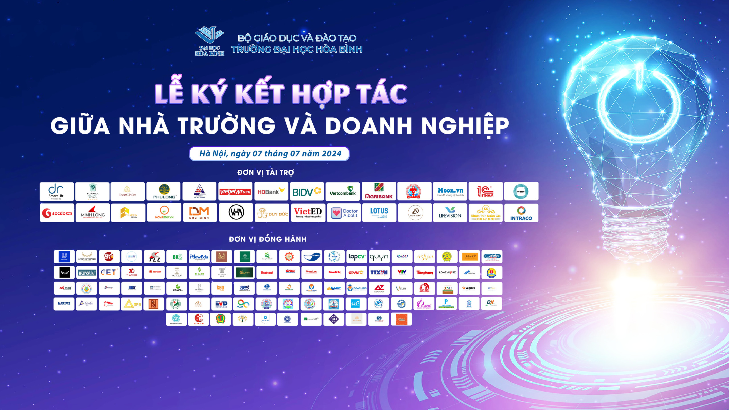 Nhằm thực hiện chủ trương xây dựng Trường Đại học Hòa Bình trở thành hình mẫu trường đại học ngoài công lập hợp tác chặt chẽ với doanh nghiệp, đào tạo theo đặt hàng của doanh nghiệp và nhu cầu xã hội, hướng tới xây dựng mô hình hợp tác chặt chẽ giữa 03 nhà: Nhà nước - Nhà trường - Doanh nghiệp, Trường Đại học Hòa Bình long trọng tổ chức "Lễ Ký kết Hợp tác giữa Nhà trường và Doanh nghiệp".